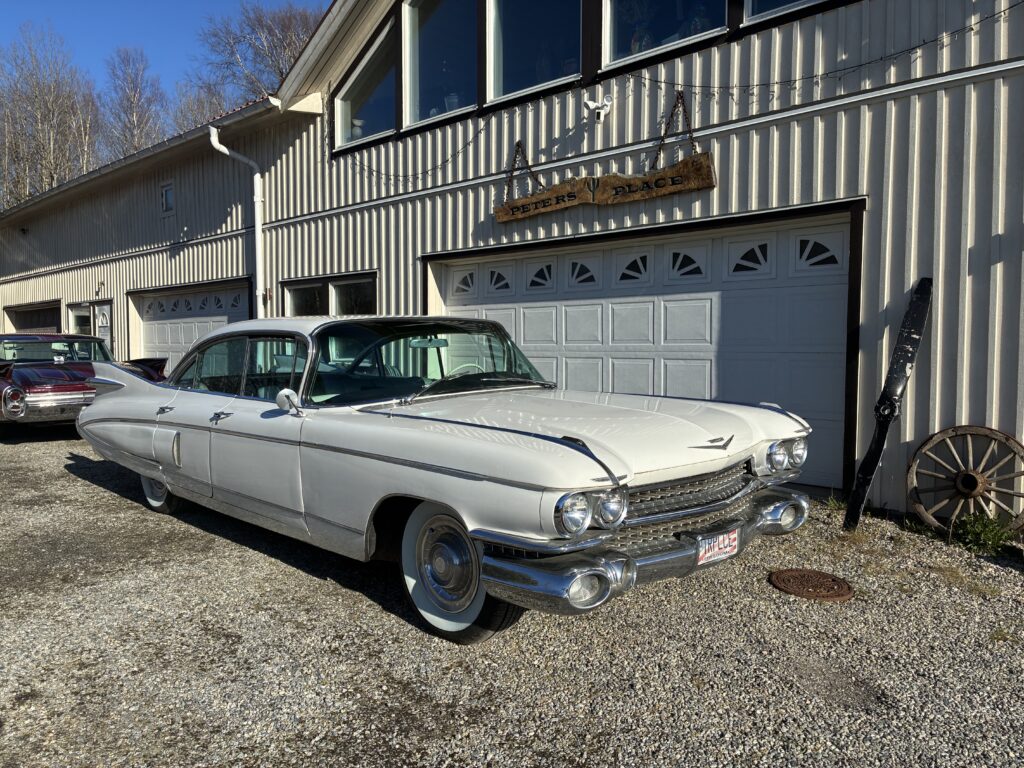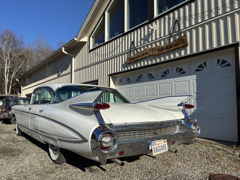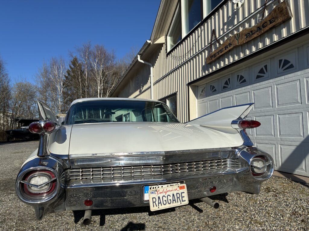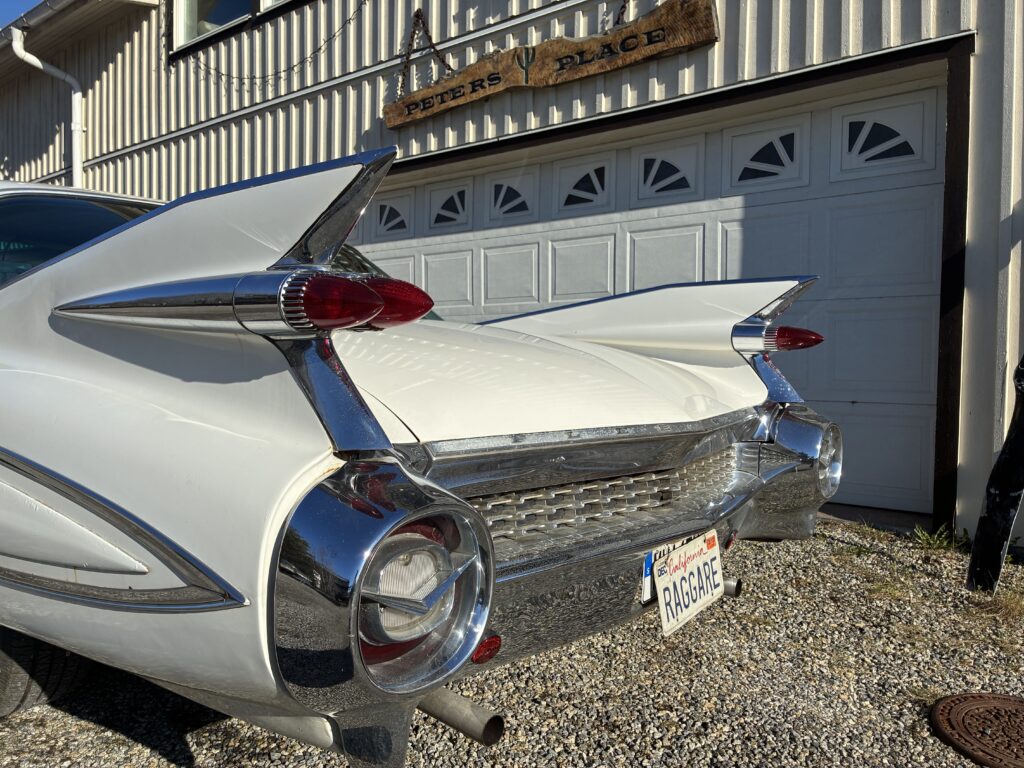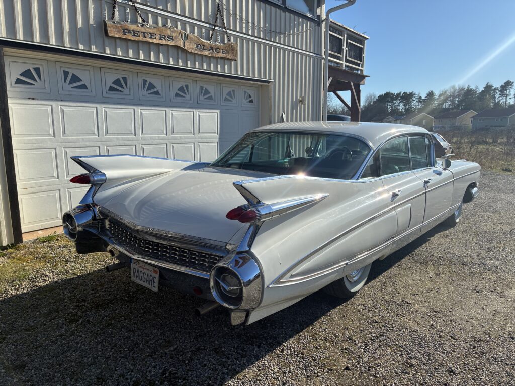 Det är en Fleetwood, alltså top of the Line Cadillac i sedan utförandet 1959. Det gör den naturligtvis särskilt lämpad som raggarbil med enormt utrymme i baksätet och mycket attityd.