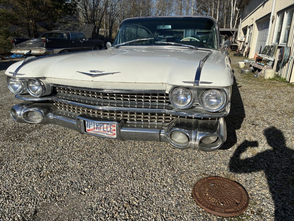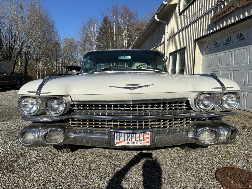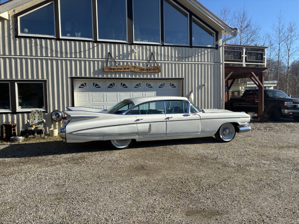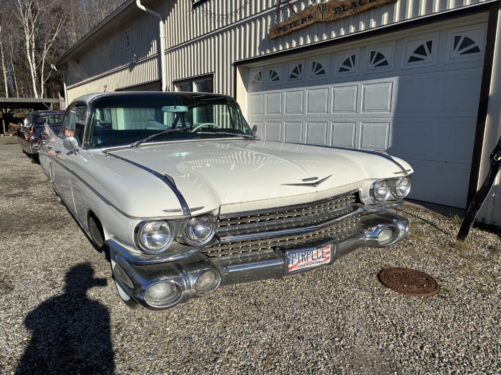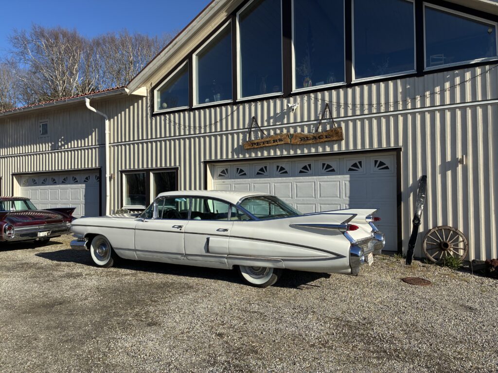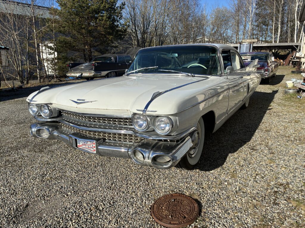 Det är en Fleetwood, alltså top of the Line Cadillac i sedan utförandet 1959. Det gör den naturligtvis särskilt lämpad som raggarbil med enormt utrymme i baksätet och mycket attityd.