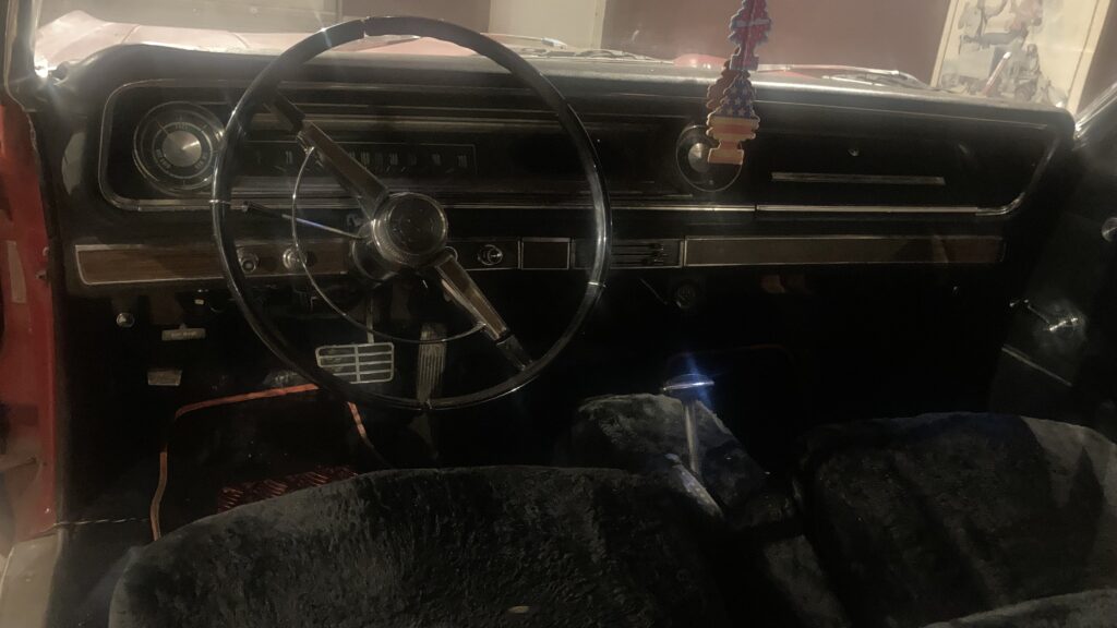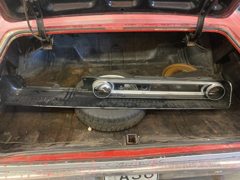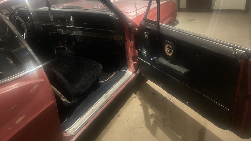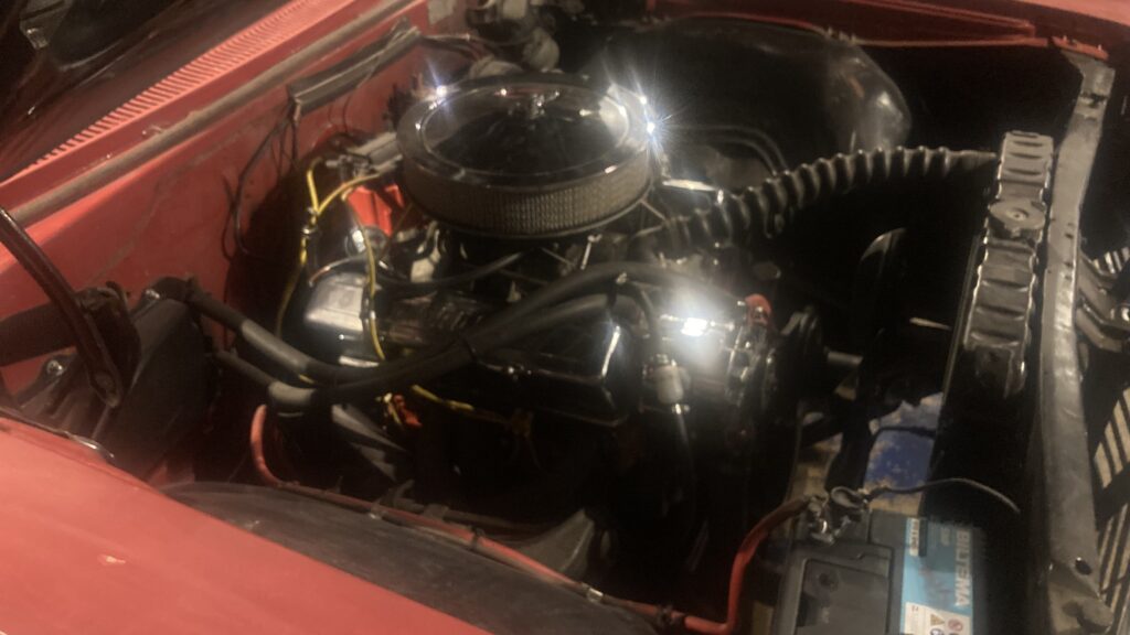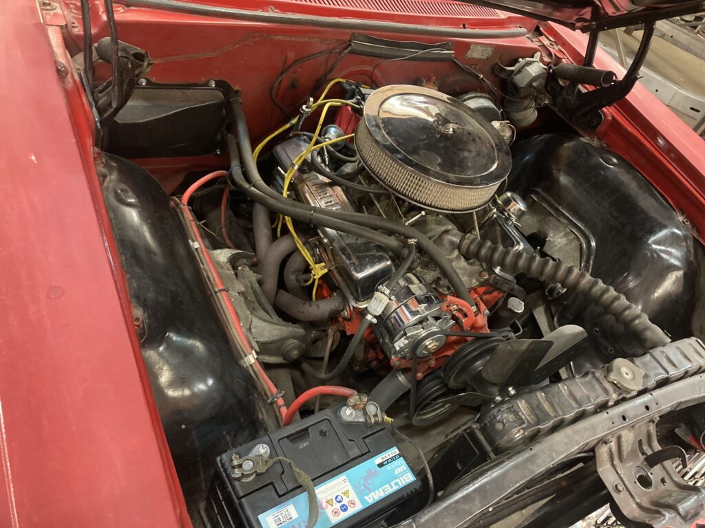 Mekaniskt är den bra i ordning, sitter en trimmad 350 V8 som enligt tidigare ägare har smidd vev och kolvar, Holley double pumper på alu insug som går och låter riktigt gött genom headers och grova rör. TH 350 lådan växlar bra, framvagnen känns tajt i styrning och bilen är fin att köra.