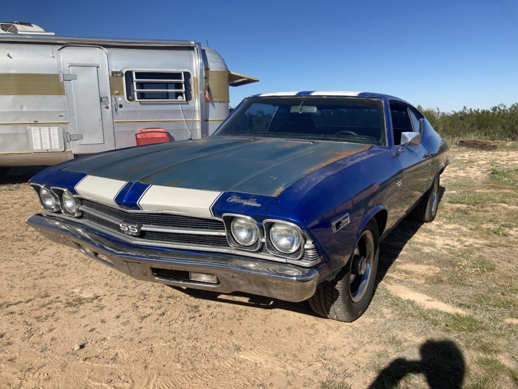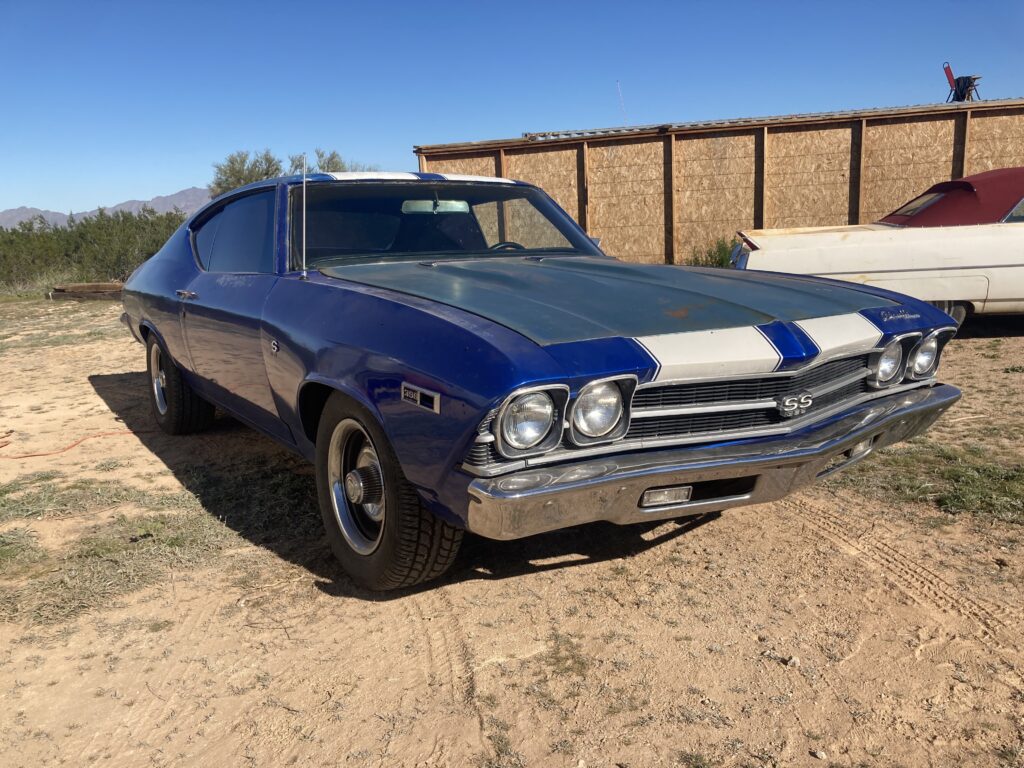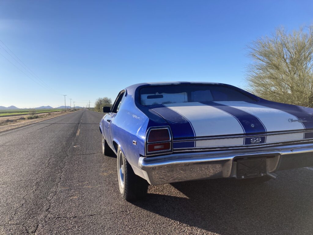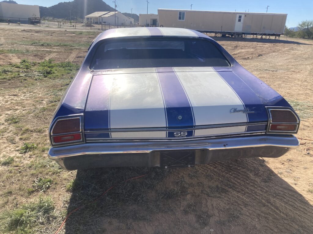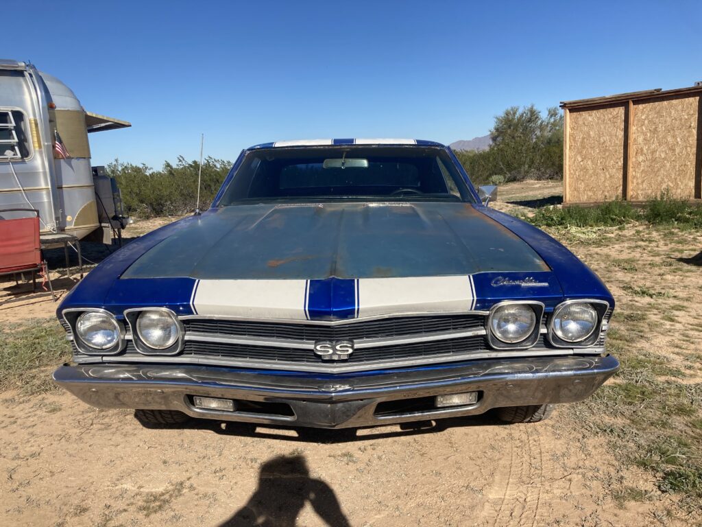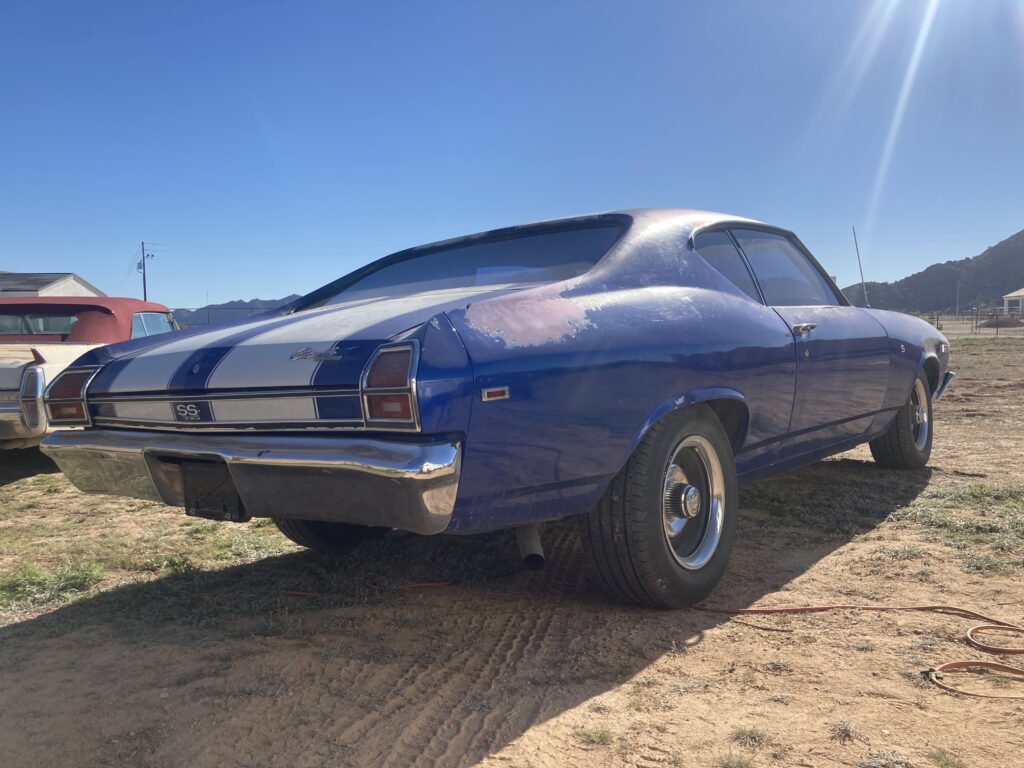 Chevellen har alltid bott i Tucson och har därför en mycket solid kaross med minimal rost och naturligtvis solbränd lack! Huven som sitter på är bilens original, den lades åt sidan tidigare då bilen hade en huv med scoop på, så den visar bilens original färg.