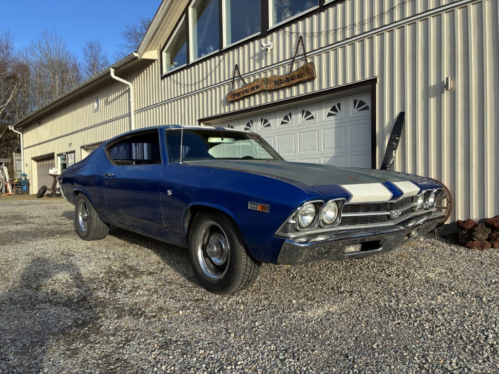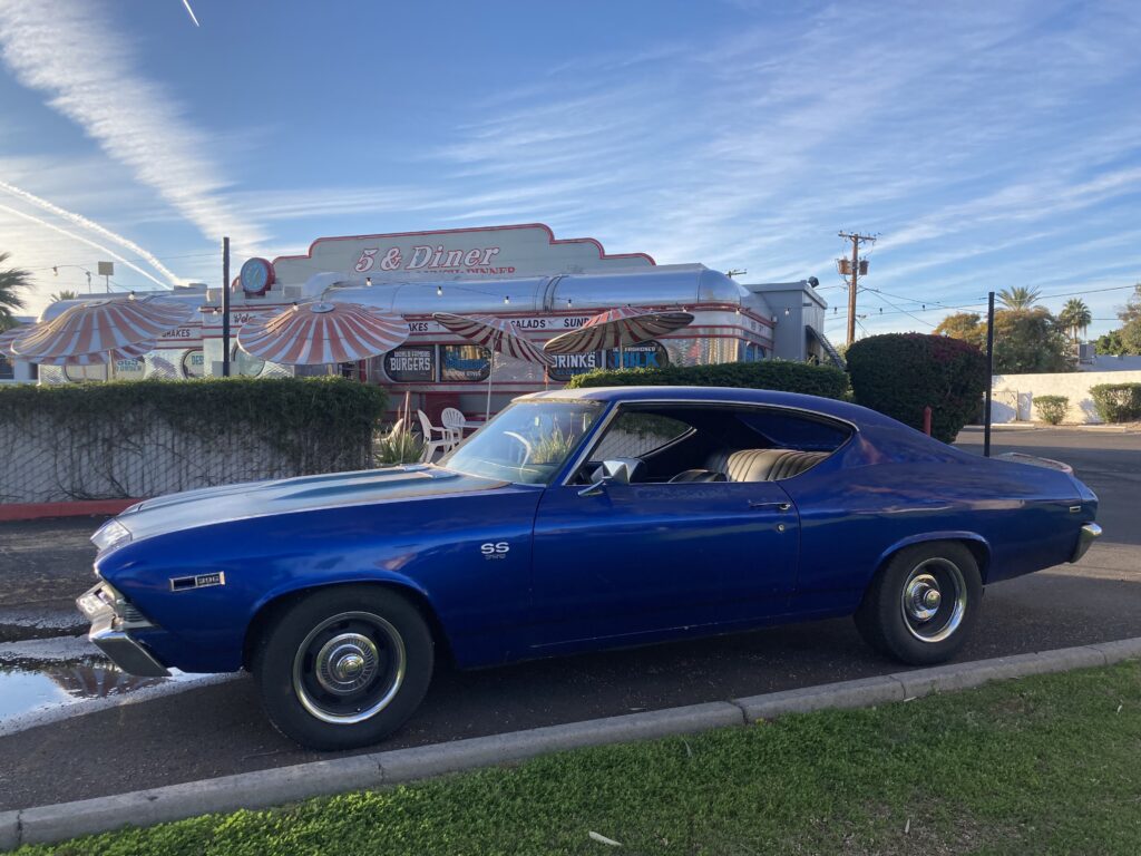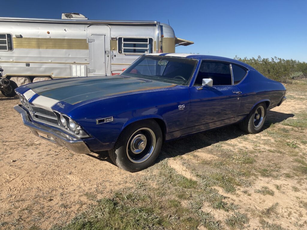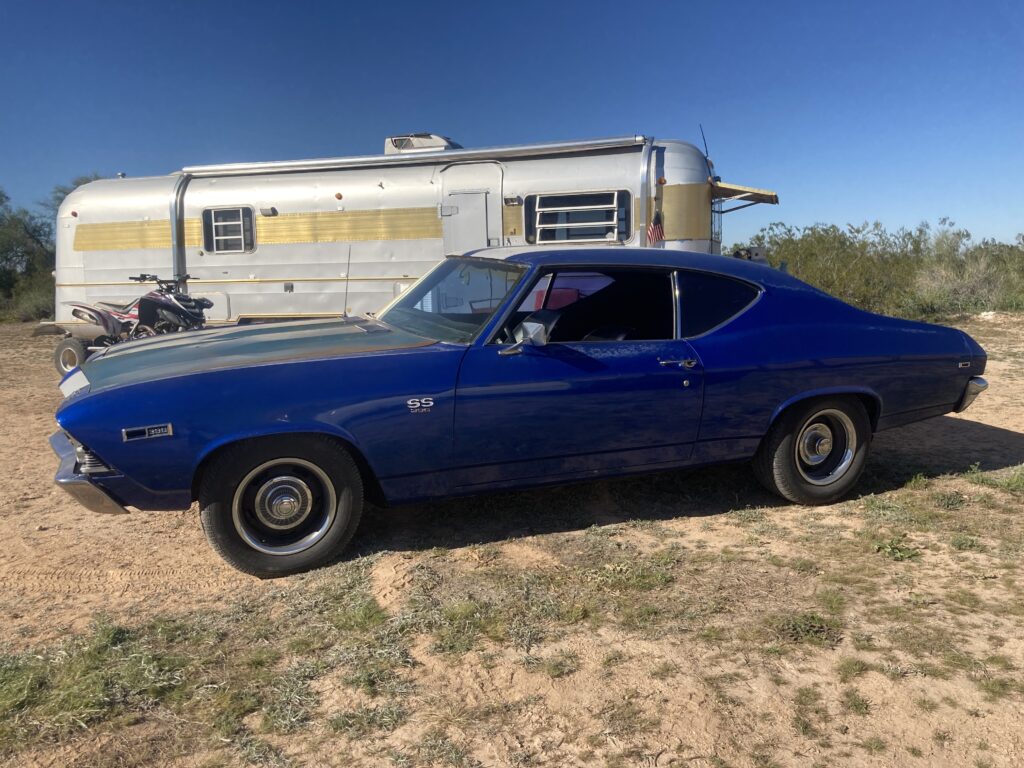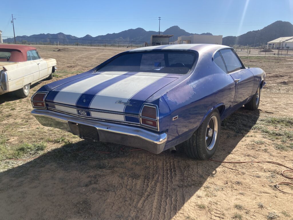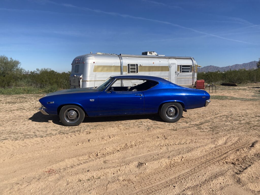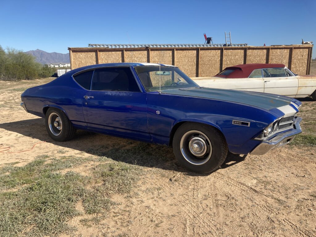 Chevellen har alltid bott i Tucson och har därför en mycket solid kaross med minimal rost och naturligtvis solbränd lack! Huven som sitter på är bilens original, den lades åt sidan tidigare då bilen hade en huv med scoop på, så den visar bilens original färg.